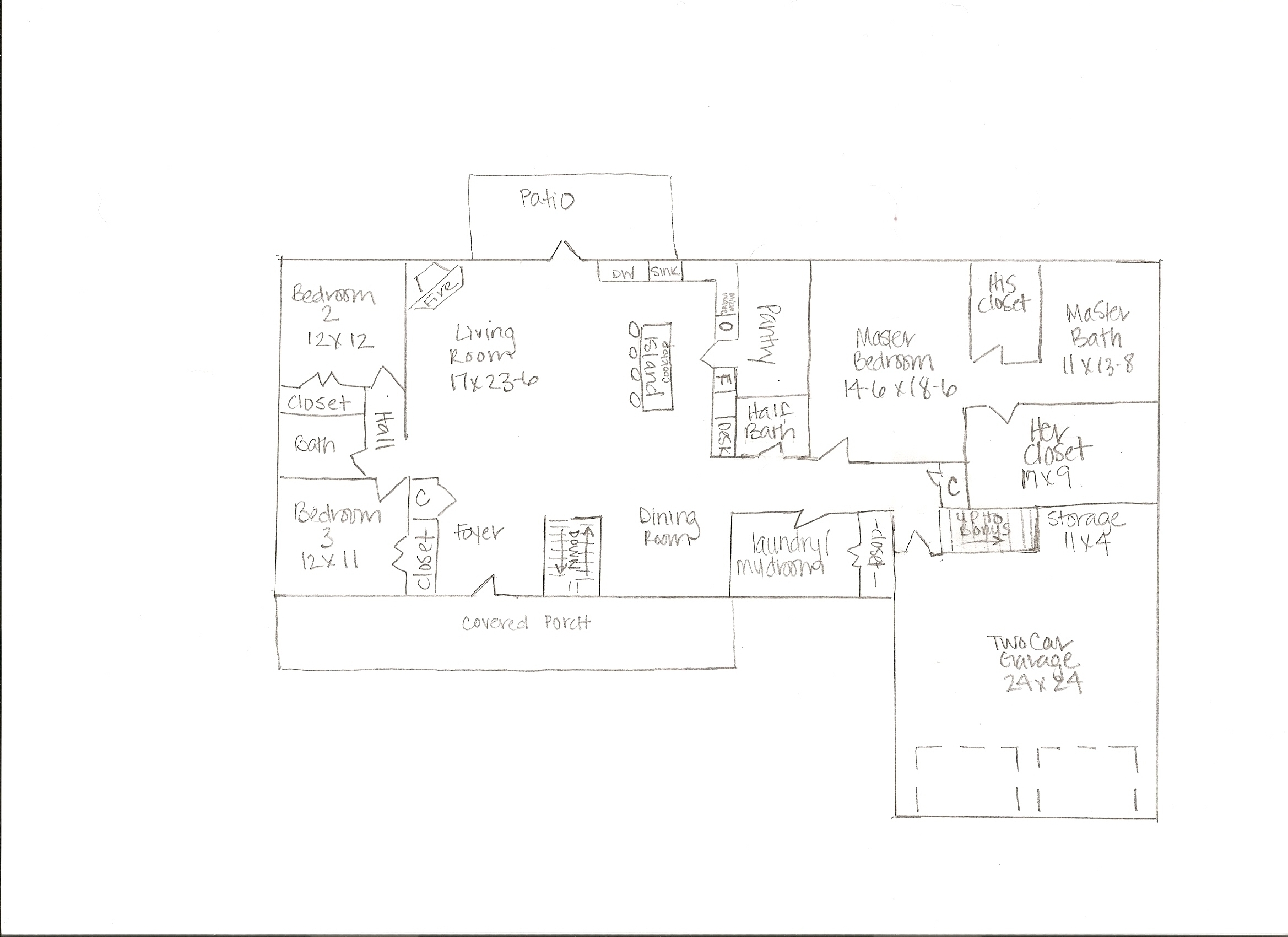 After we purchased the land, we casually searched the internet for house plans that we liked. The most important part was finding an exterior that we liked, because the interior could be rearranged to what we wanted. We came across an exterior that we both liked and an interior that could be changed minimally to what we wanted. The requirements were: