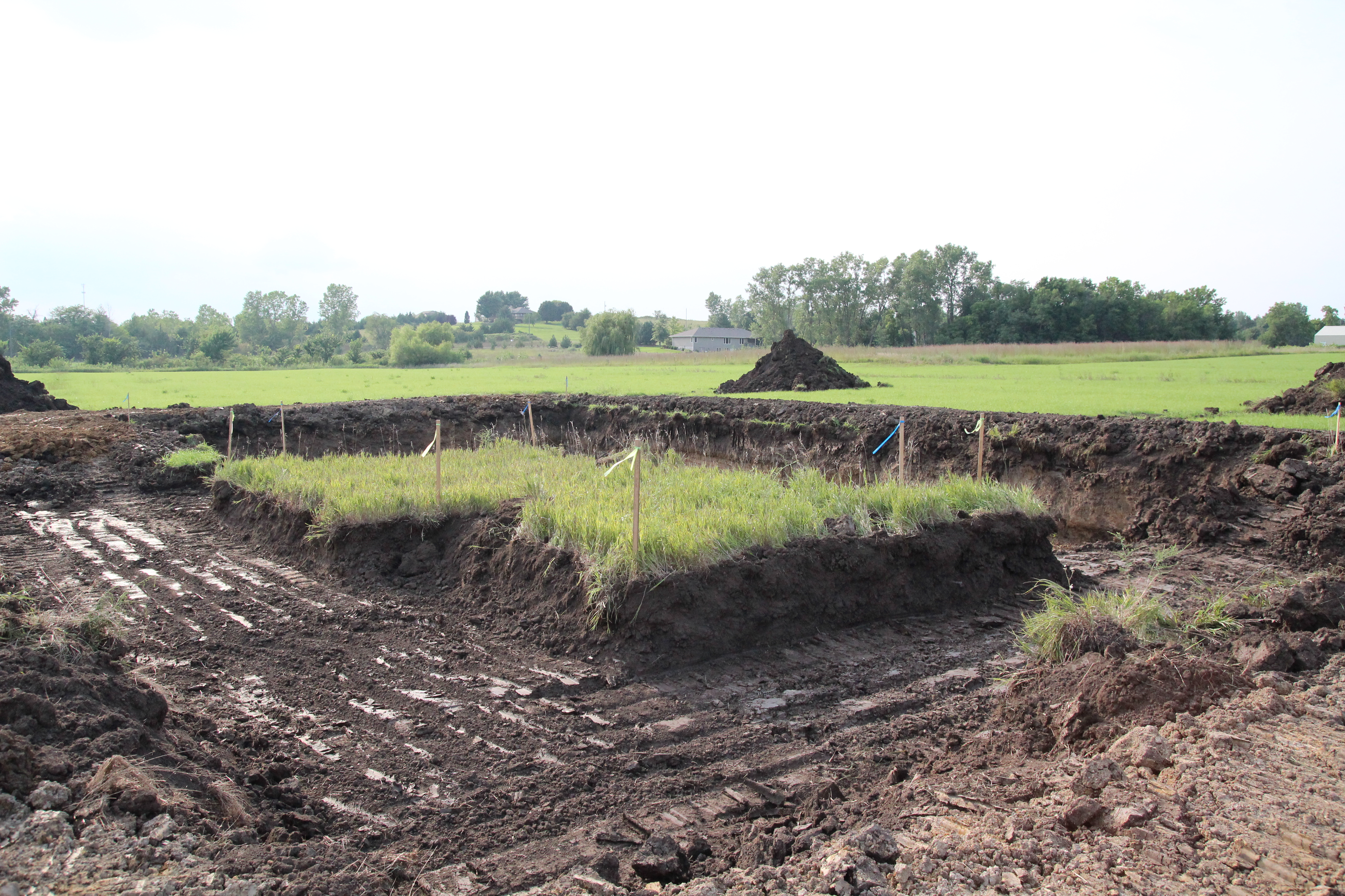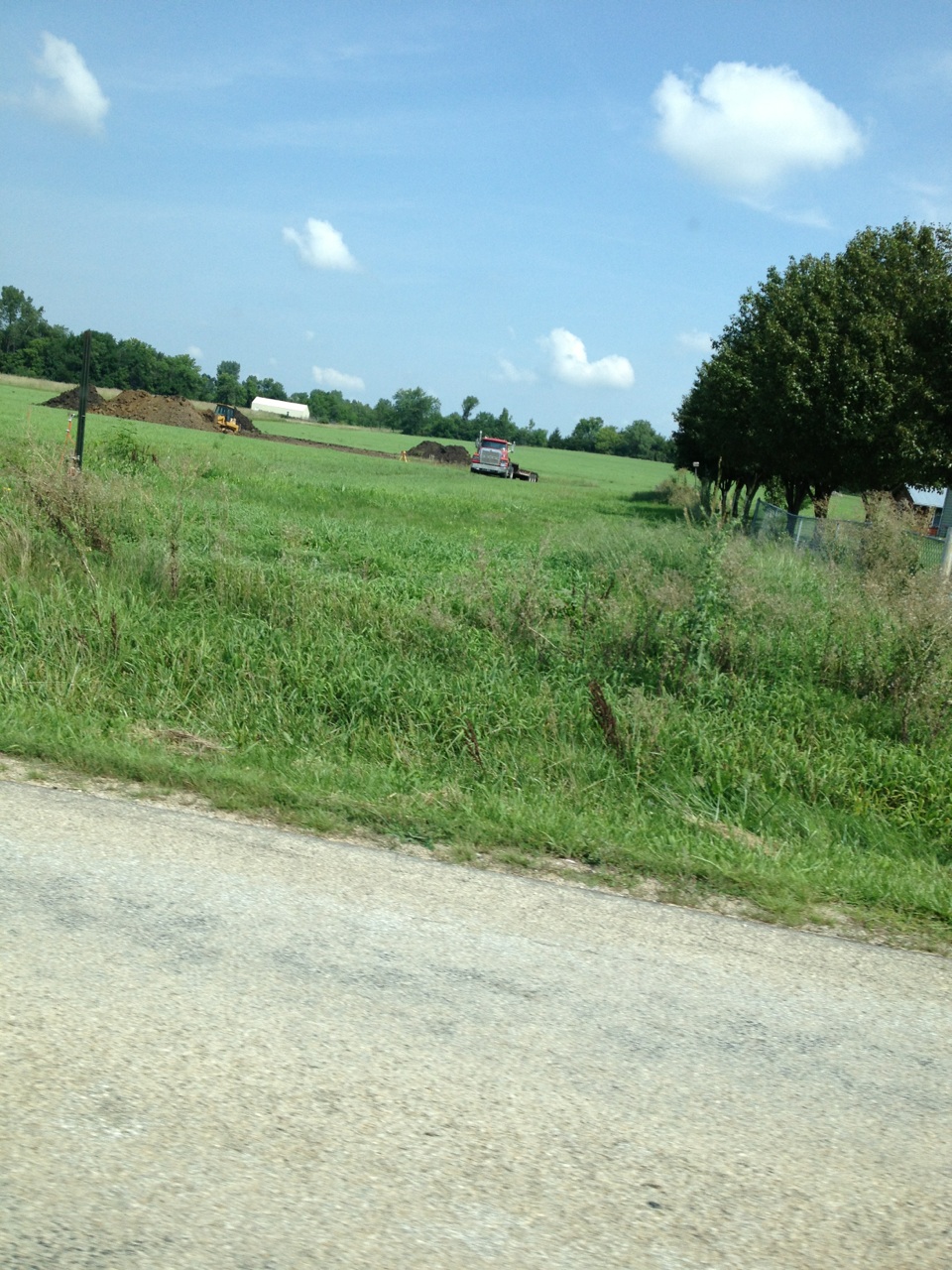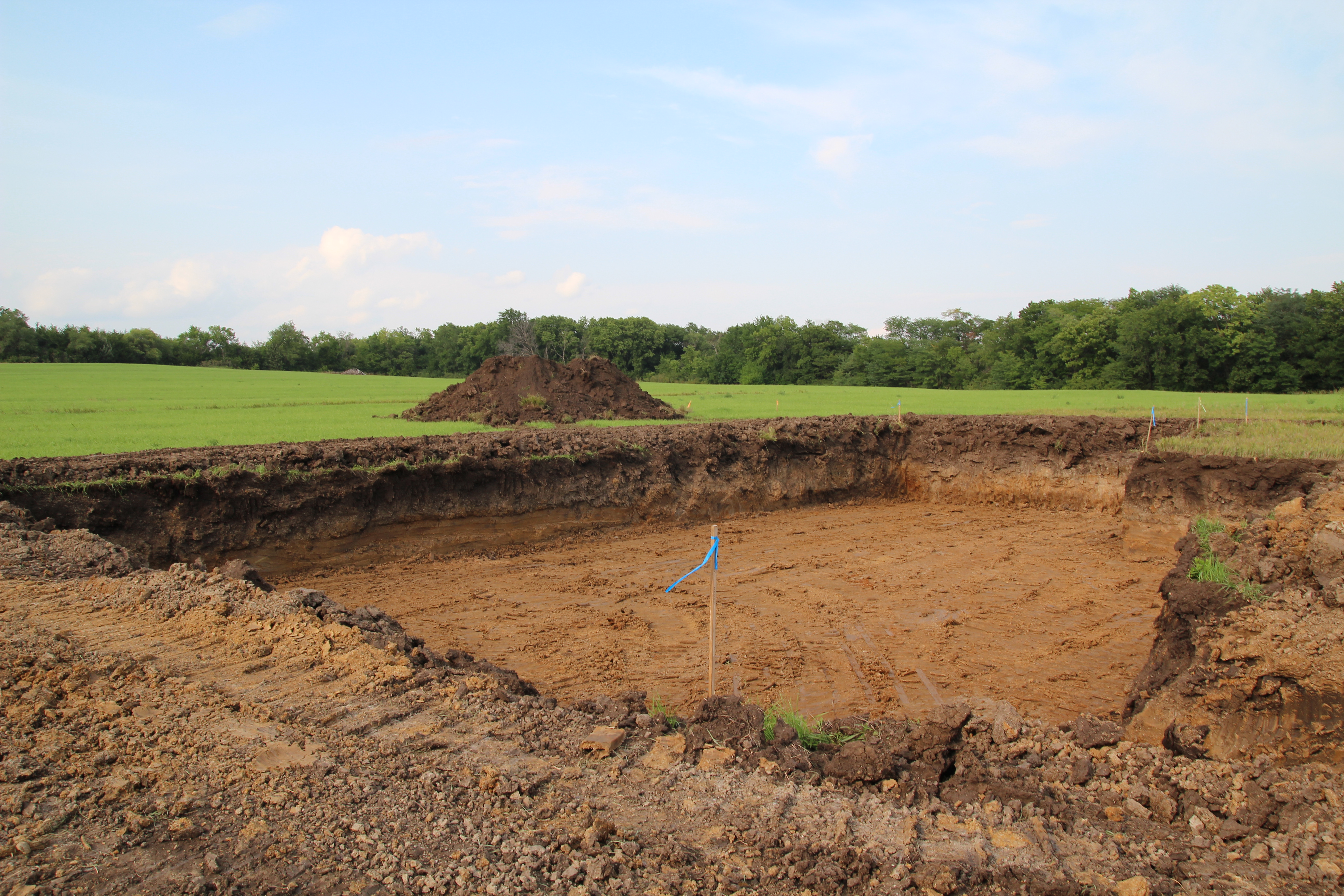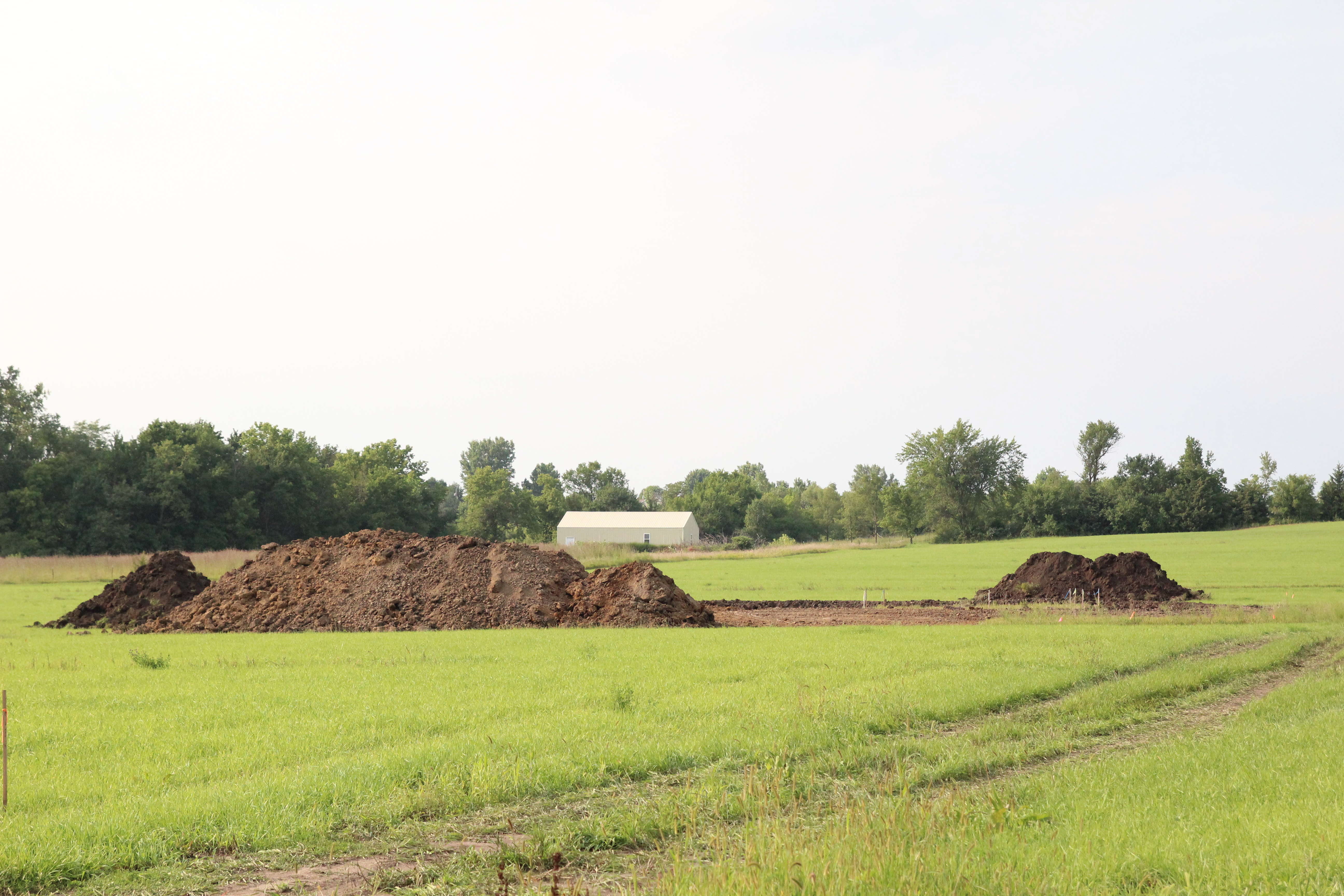 So, the land was re-staked [8/2/13]! And then it rained. And rained. And rained some more. Basically it rained about 10 days in a row. During a drought. We basically had no moisture for an entire year and it decided to rain the week we were going to break ground. However, I will say I am happy for the corn. The corn is happy and tall and green. I will also say that our grass on the land looks beautiful. Not something you usually see in August.